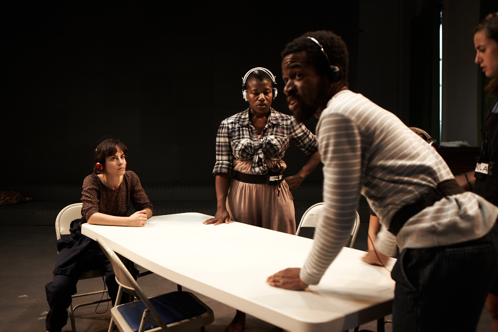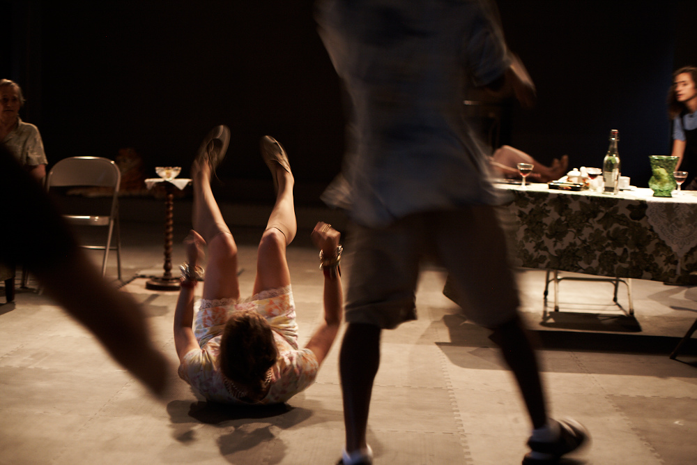 In the summer of 2010, we visited Abby’s great uncle Woody and aunt Nancy who live in Mineola, Long Island. An audio recorder in Michael’s pocket accidentally captured the whole thing, from arrival to departure. This coincided with plotting a new performance, and questions about dramatic structure and the ways in which playscripts can unfold. After listening to this inadvertent documentary, we found the banality of the afternoon, as well as the structure of the whole thing (including the exposition at the beginning, and the arrival in the “final act” of a new character, Barbara, Nancy’s sister) to be a kind of living room play. We assembled a cast (Lucy Kaminsky, Ike Ufomadu, Jenn Kidwell, Paola di Tolla, Roger Lirtsman) and listened to this recording over and over and over again. We listened until we knew every twist and turn, and every rise and fall of each person’s voice. As we began inhabiting the script, the deeper complexities of the afternoon began to surface.