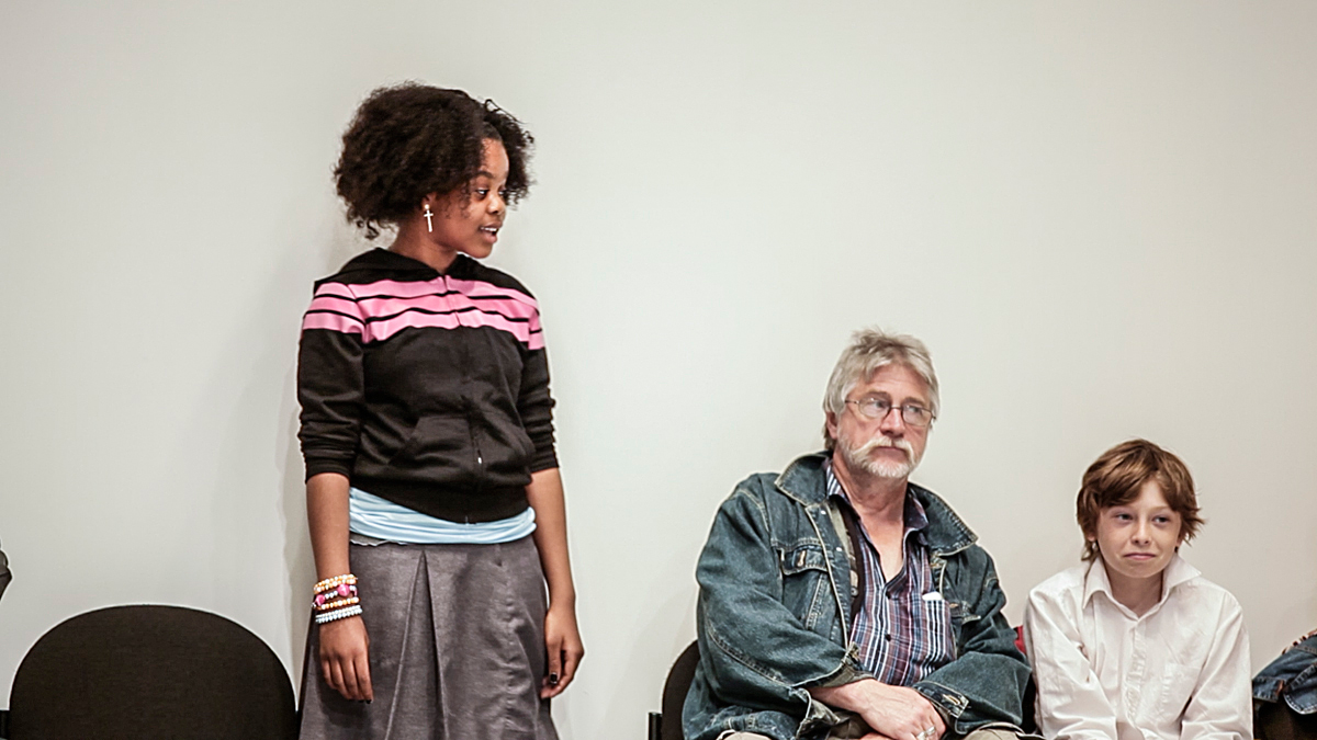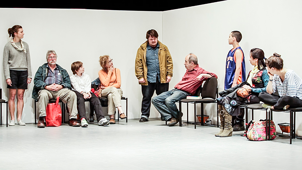 Eight people from various ages and backgrounds come together to enact a living portrait of themselves. Performed in a neutral, bright container, this work examines and amplifies each performer, as an individual and as a member of a group, in banality and crisis.